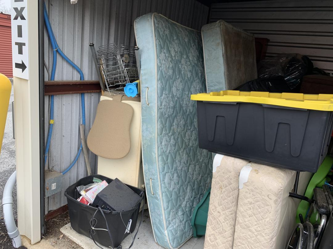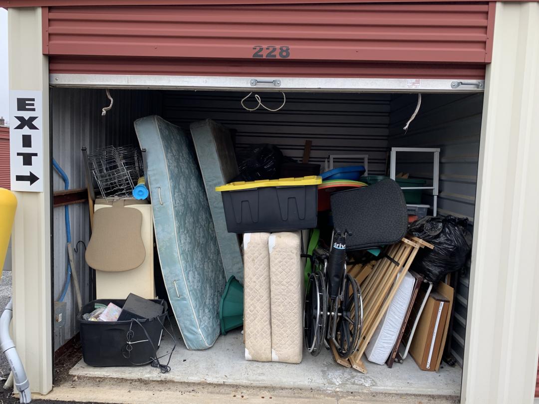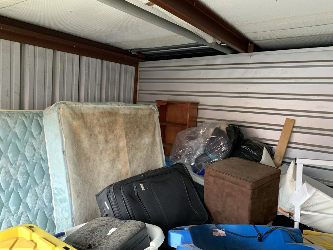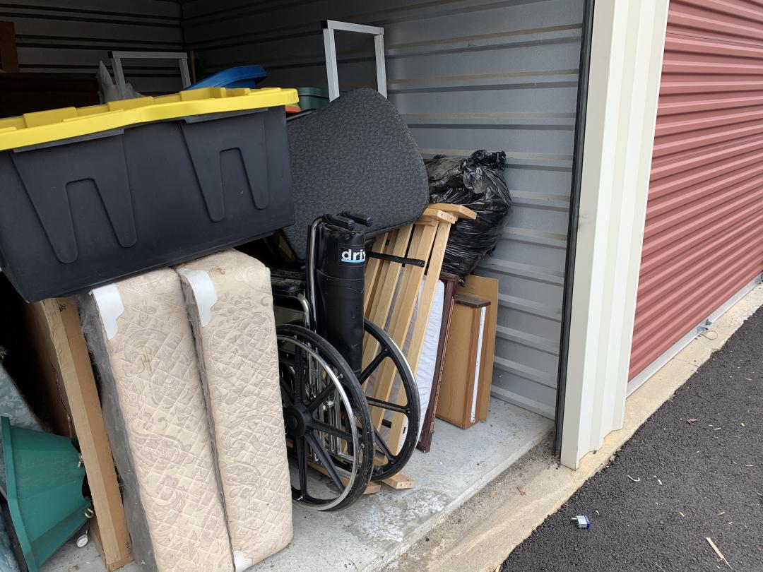 This unit appears to contain…Bags, Mattresses, Wheelchair, Shelving, Totes