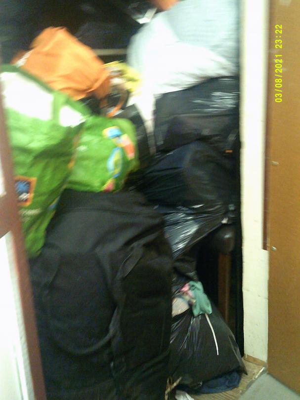 This unit appears to contain…READ ALL AUCTION RULES BEFORE BIDDING!!! Unit appears to contain: Bags, Clothes, Microwave