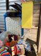This unit appears to contain…Climate Controlled First Floor - 2 baby strollers, pack n play, toddler bed, dresser & chest of drawers, clothes, bookcase, Toys, luggage, rocking horse, baby gate, Patio umbrella, misc boxes, bags, and totes