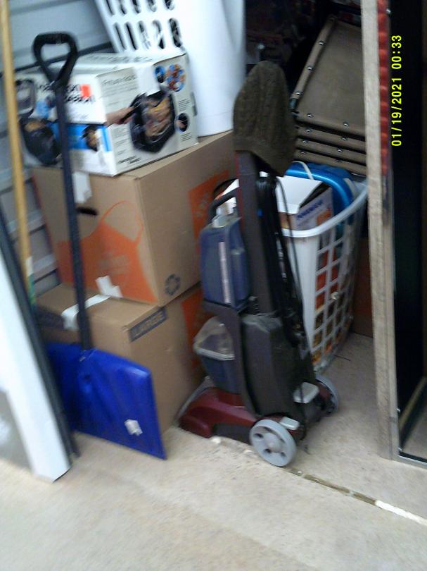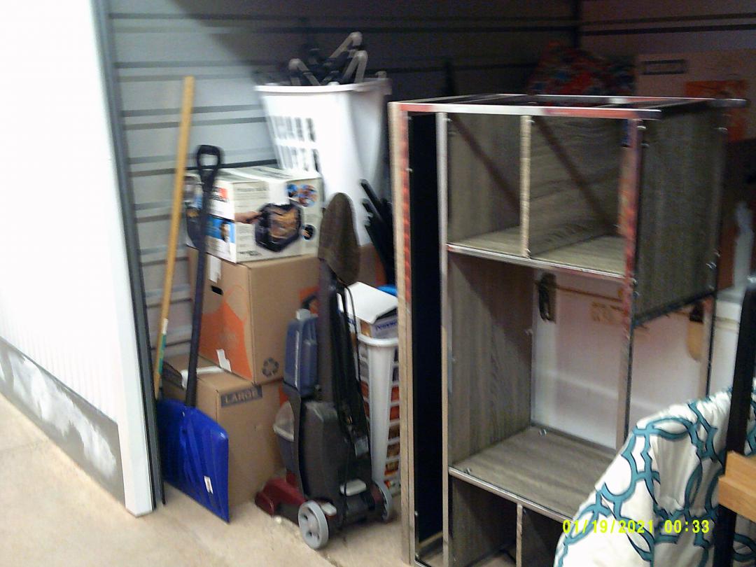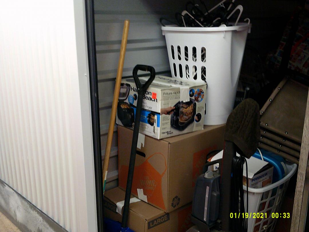 This unit appears to contain…READ ALL AUCTION RULES BEFORE BIDDING!!! Unit appears to contain: Ac unit, steam cleaner, shelves, tv, mattress, box spring, microwave, chairs, boxes, vacuum, bags