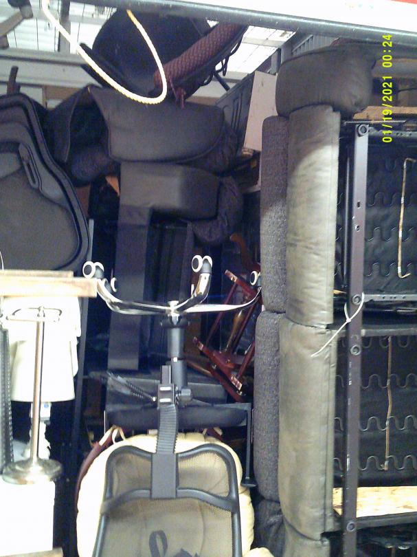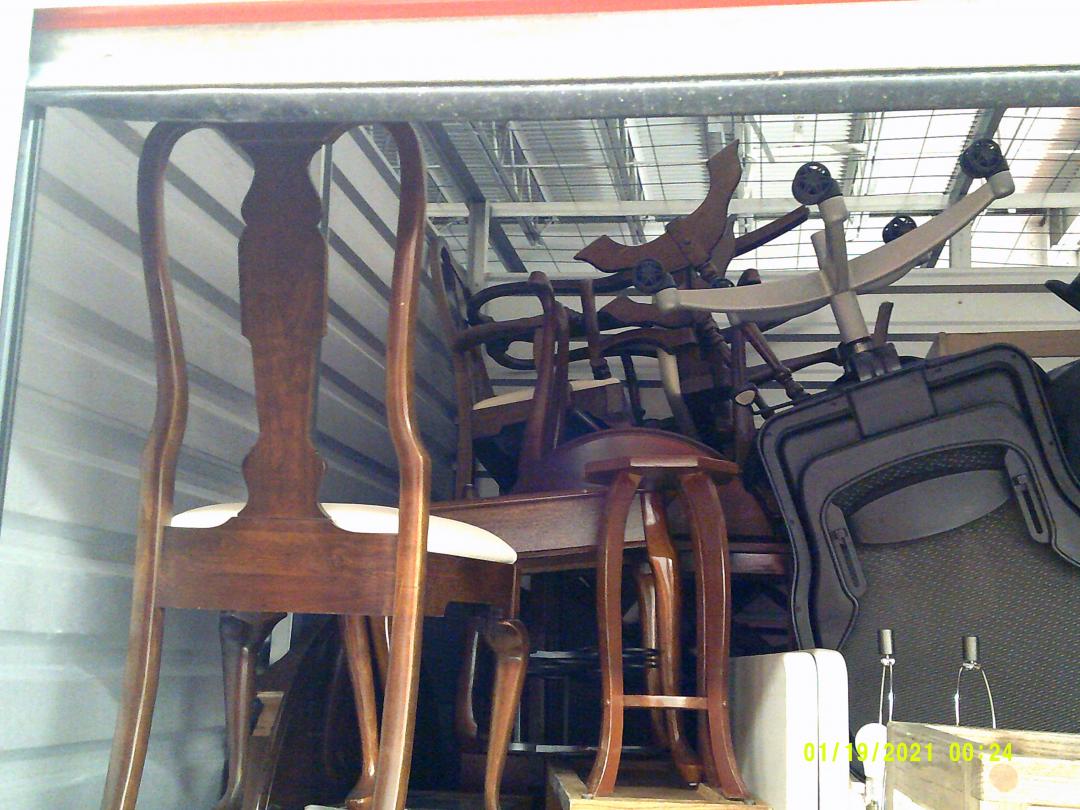 This unit appears to contain…READ ALL AUCTION RULES BEFORE BIDDING!!! Unit appears to contain: Desk chairs, dining chairs, hutch, couches, end table, coffee tables, lamps, chest freezer