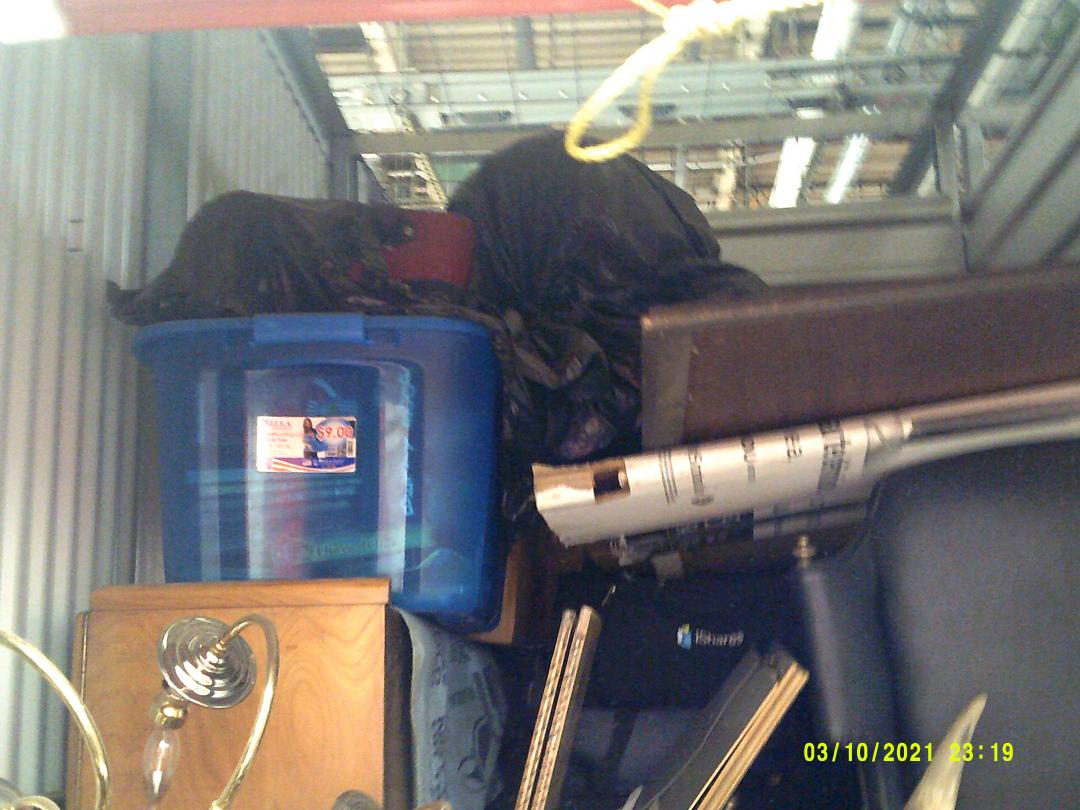 This unit appears to contain…READ ALL AUCTION RULES BEFORE BIDDING!!! Unit appears to contain: Chair, coffee table, clothes, boxes, chandelier, dresser, totes, baseball bat