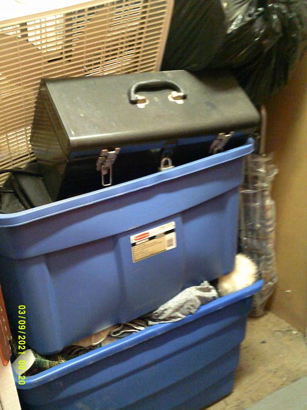 This unit appears to contain…READ ALL AUCTION RULES BEFORE BIDDING!!! Unit appears to contain: totes, bags, toolbox, fan, boxes, chair, laundry rack