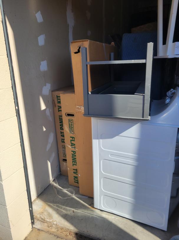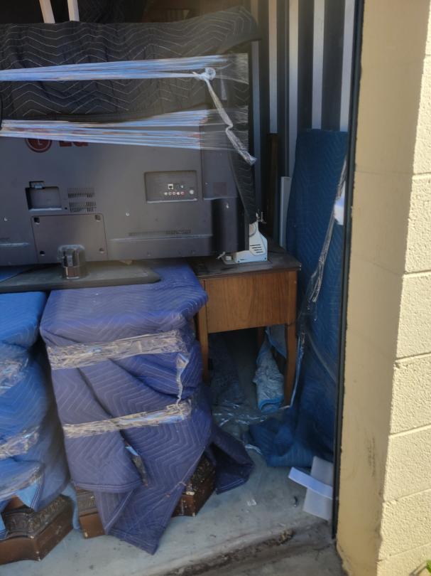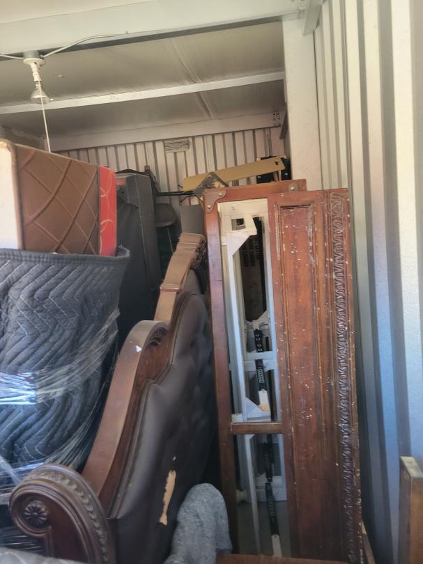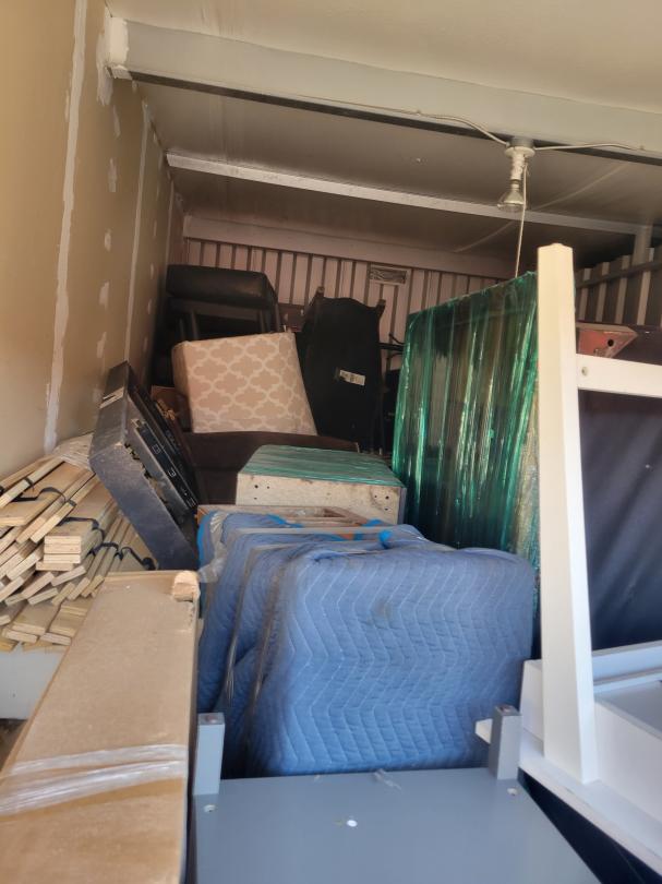 This unit appears to contain…Dryer,TV,Filing Cabinets,Couches,Bed Frame,Dressers or Armoire,Nightstands,Chairs,Tables,Misc. Boxes,Misc. Items,Artwork