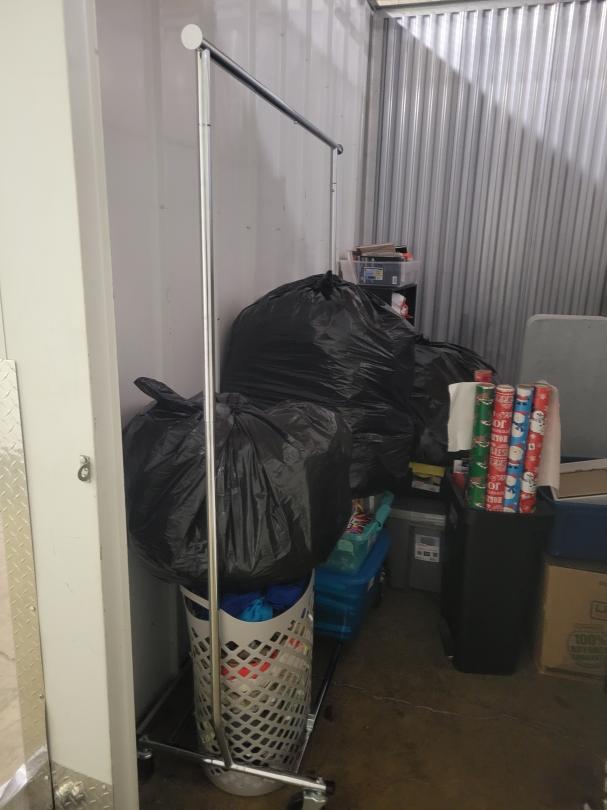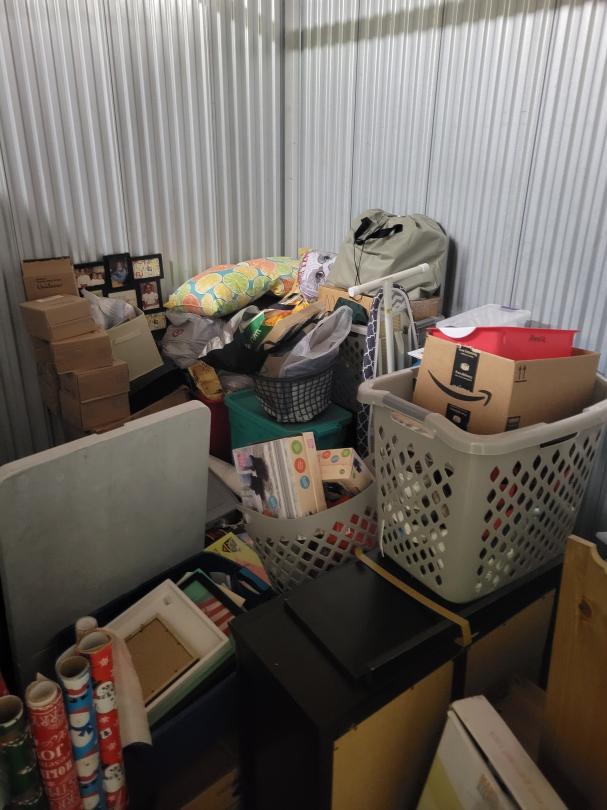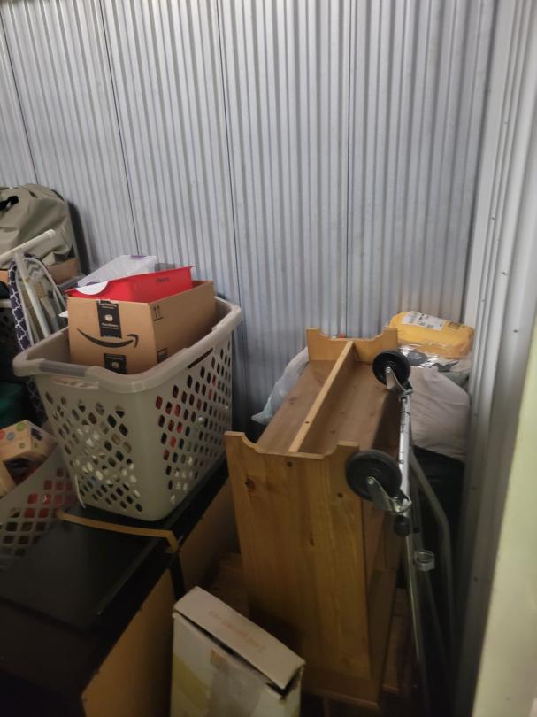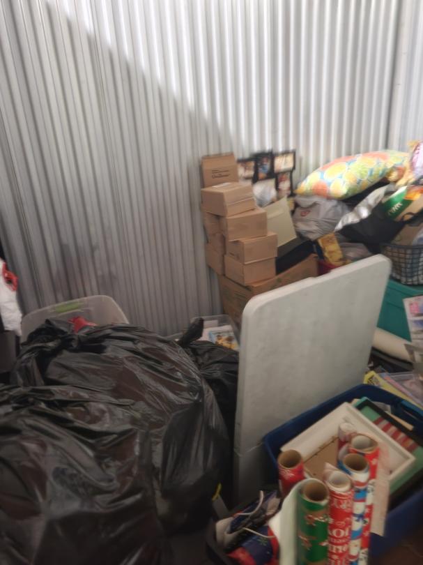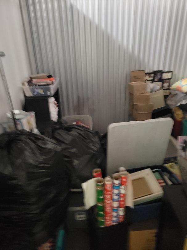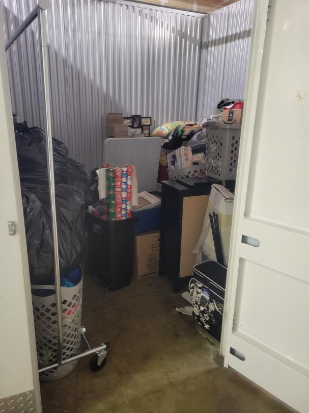 This unit appears to contain…Shelving,Dressers or Armoire,Tables,Decor,Ironing Board,Plastic Bags,Plastic Containers,Misc. Boxes,Clothing,Misc. Items,Suitcases,Laundry Baskets,Artwork
