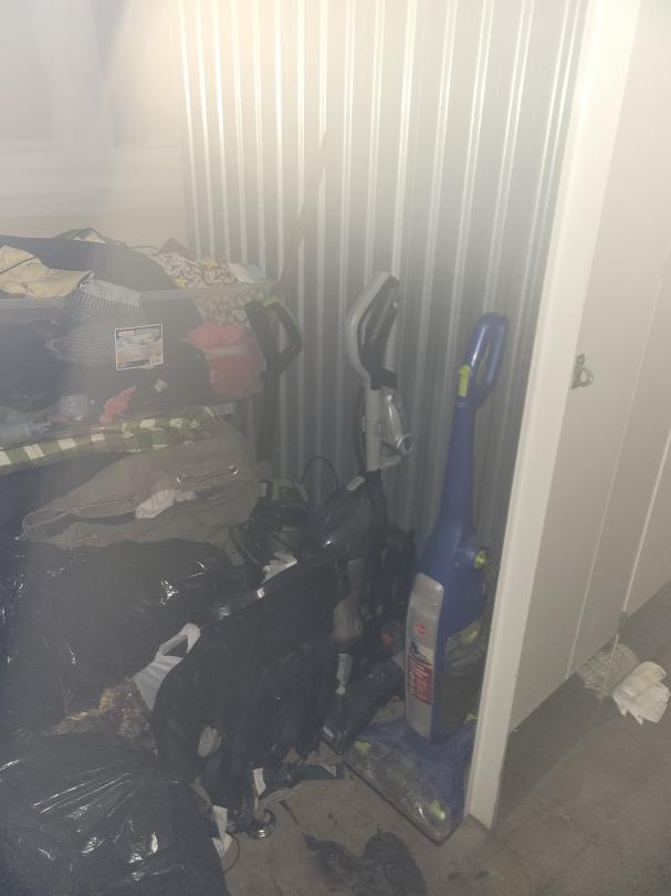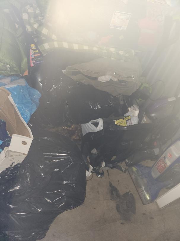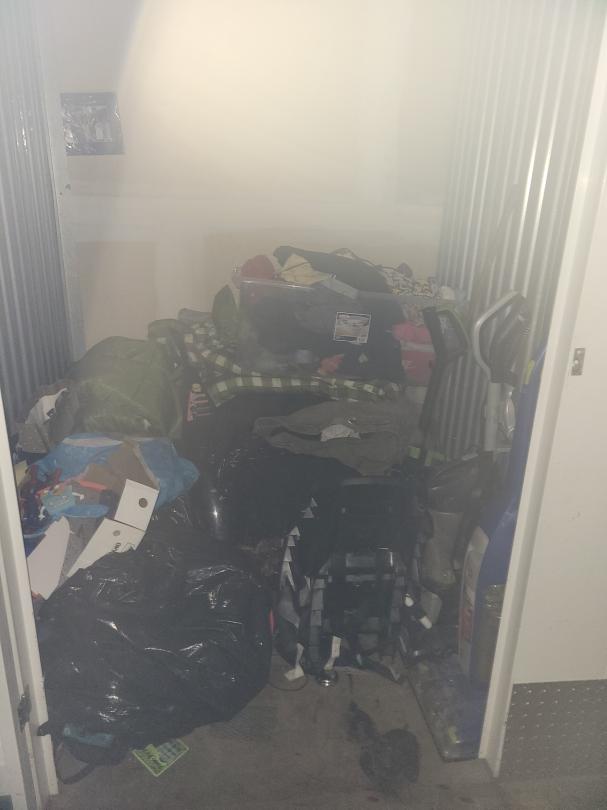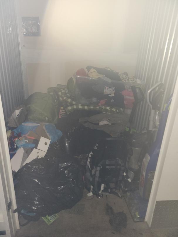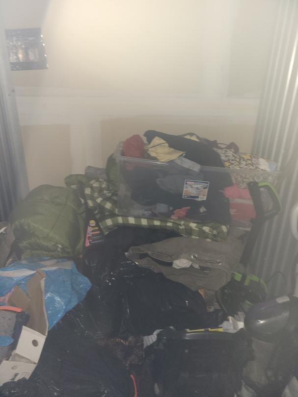 This unit appears to contain…plastic bags, plastic containers, misc. Boxes, clothing, Cleaning supplies, purses, bookbags, artwork, toys, misc. Items