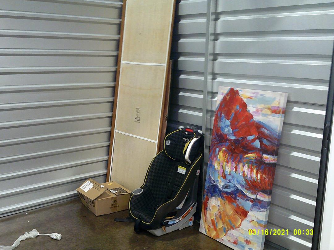 This unit appears to contain…READ ALL AUCTION RULES BEFORE BIDDING!!! Unit appears to contain: Art, car seat, A/C unit, curtain rods