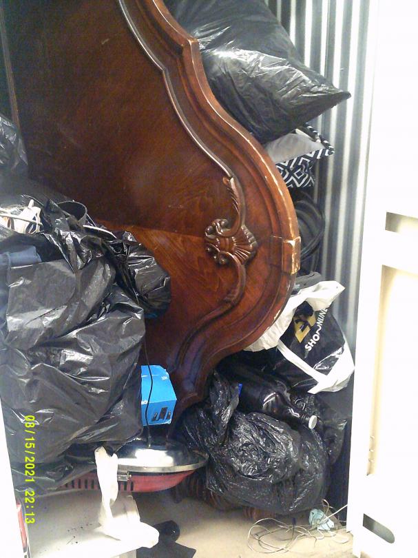 This unit appears to contain…READ ALL AUCTION RULES BEFORE BIDDING!!! Unit appears to contain: Bed frame, bags, bedding, boxes, vacuum, totes, weber grill