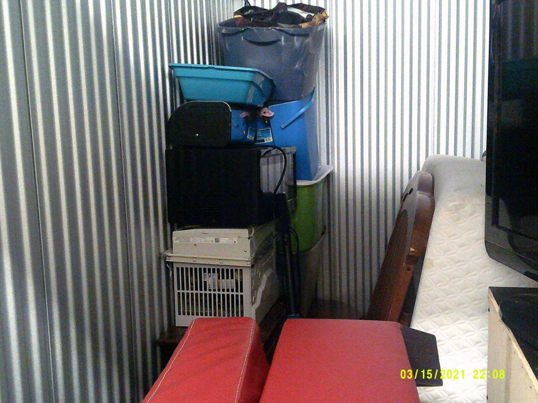 This unit appears to contain…READ ALL AUCTION RULES BEFORE BIDDING!!! Unit appears to contain: Ottoman, TV, dresser, A/C, microwave, bed frame, mattress, box spring, totes, vacuum