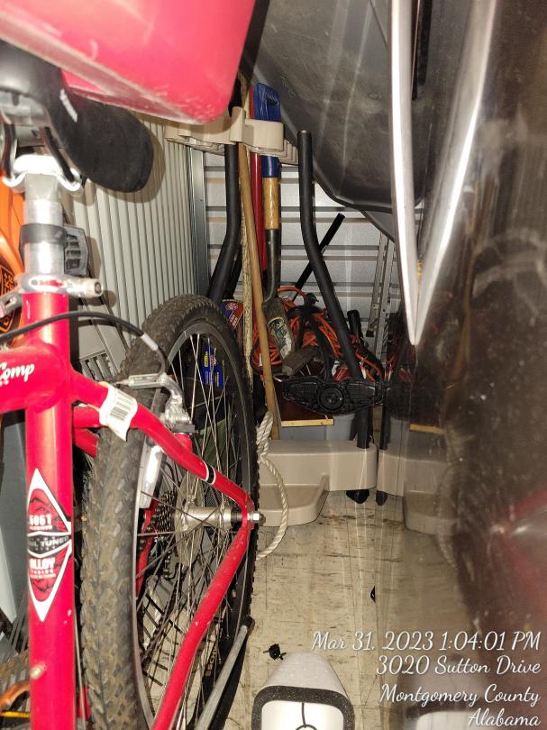 This unit appears to contain…Golf clubs, Bike, refrig. MISC