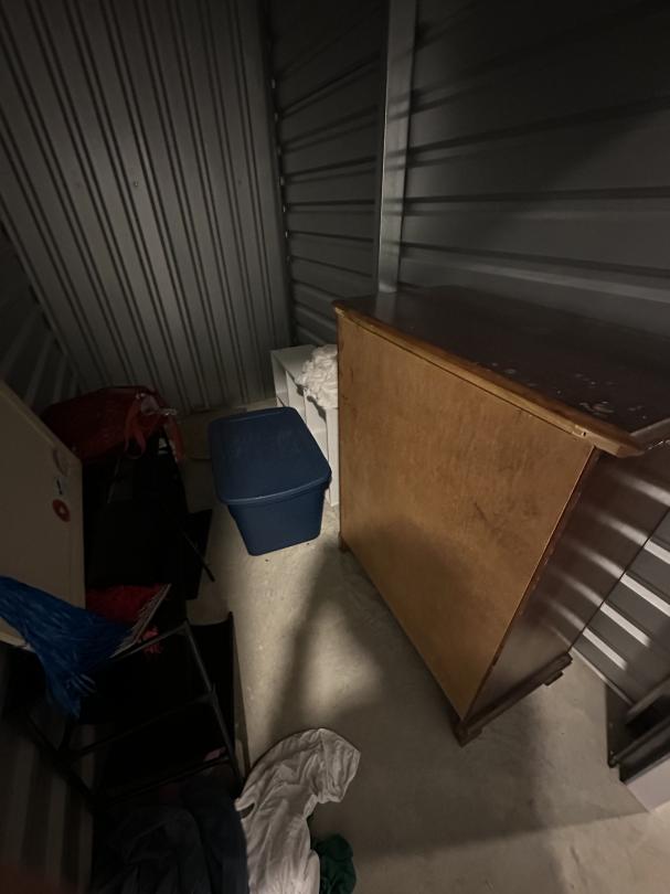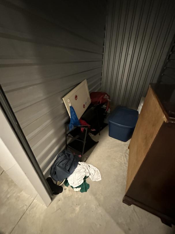 This unit appears to contain…furniture, shoe rack, clothes, containers