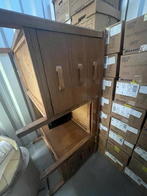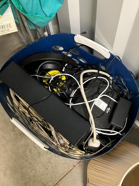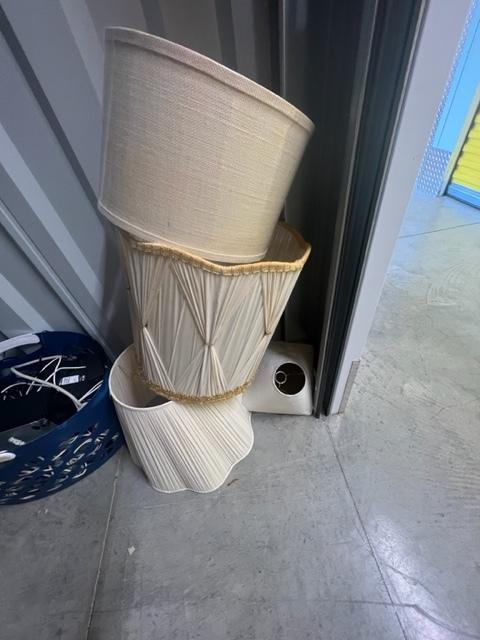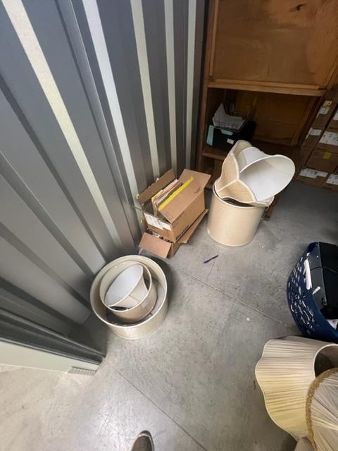 This unit appears to contain…Lamp shades, desk, computer equipment, books