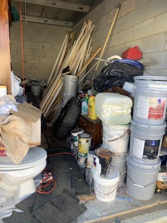 This unit appears to contain…Paint, scrap wood, furniture, toilet