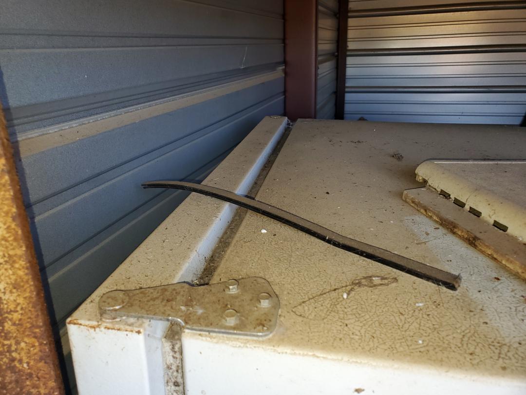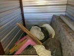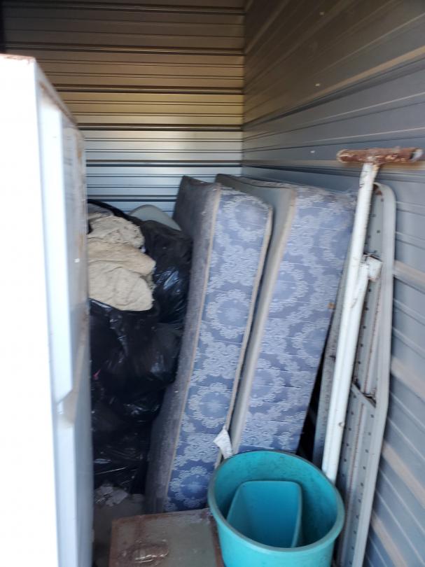 This unit appears to contain…Refrig, ironing board, old trunk, mattresses, misc.