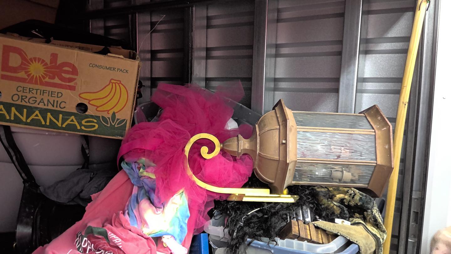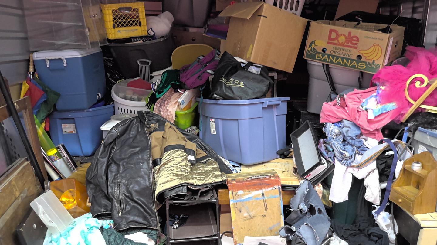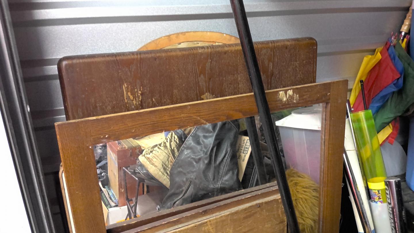 This unit appears to contain…Mirrors /Clothes /Old Trunk /Lamp /Coolers /Boxes and Tubs
