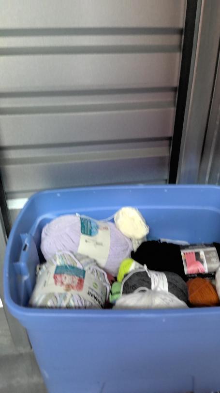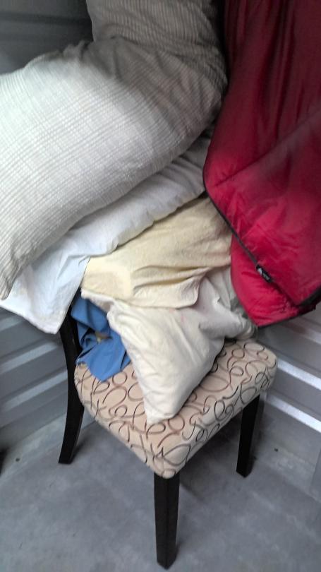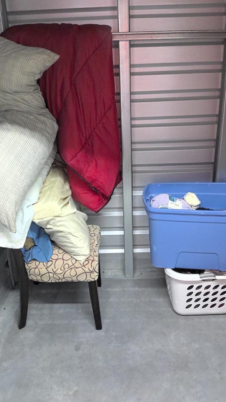 This unit appears to contain…Chair /Pillows /Sleeping Bag /Crafting Yarn and Baskets