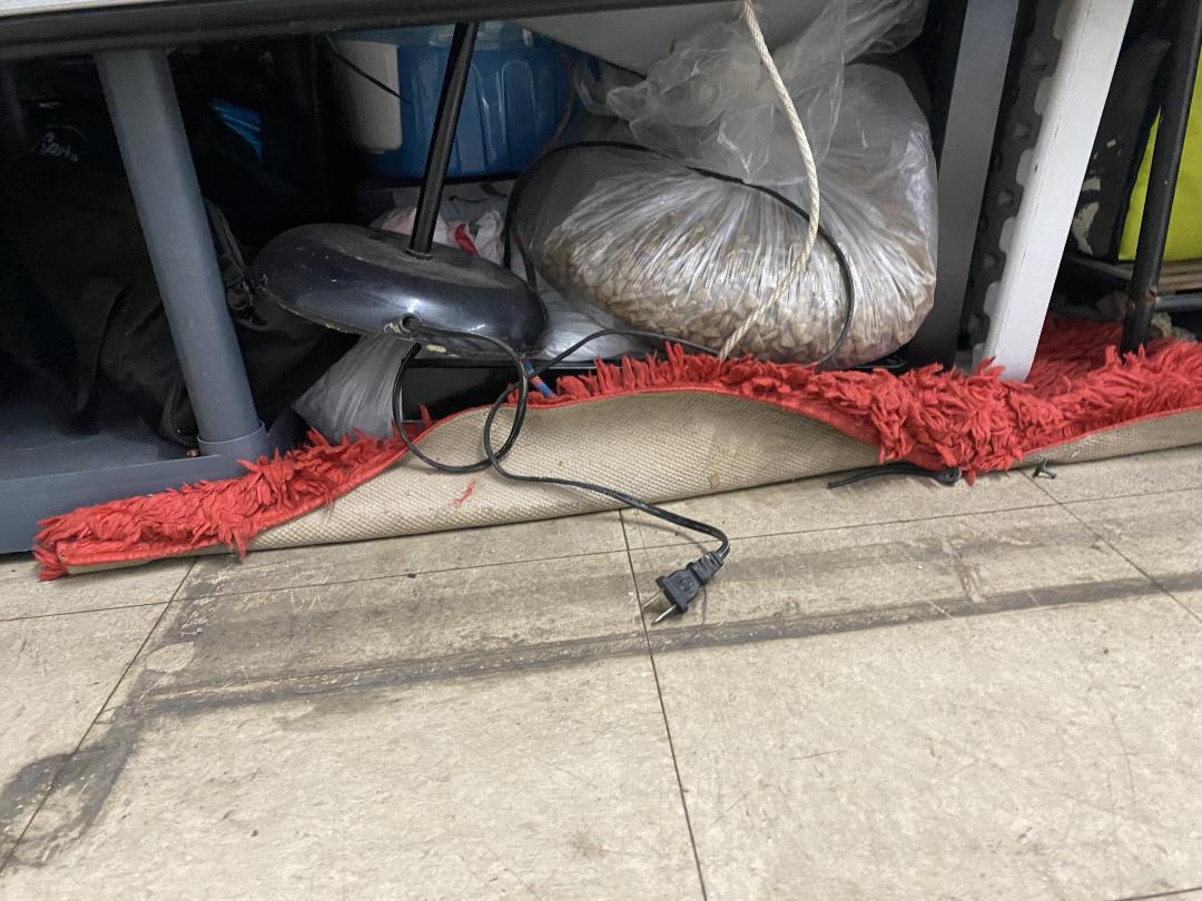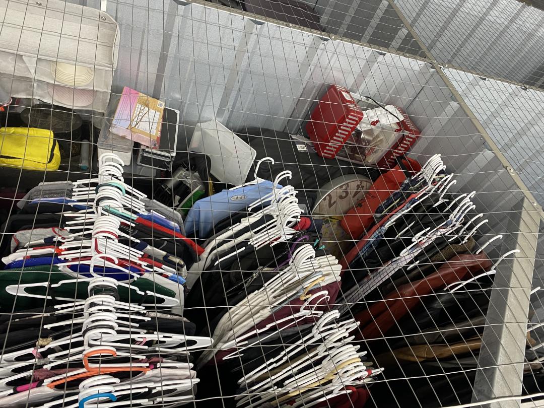 This unit appears to contain…Drive-Through Heated Rug, shelves, cloths, clock, jackets, popcorn machine