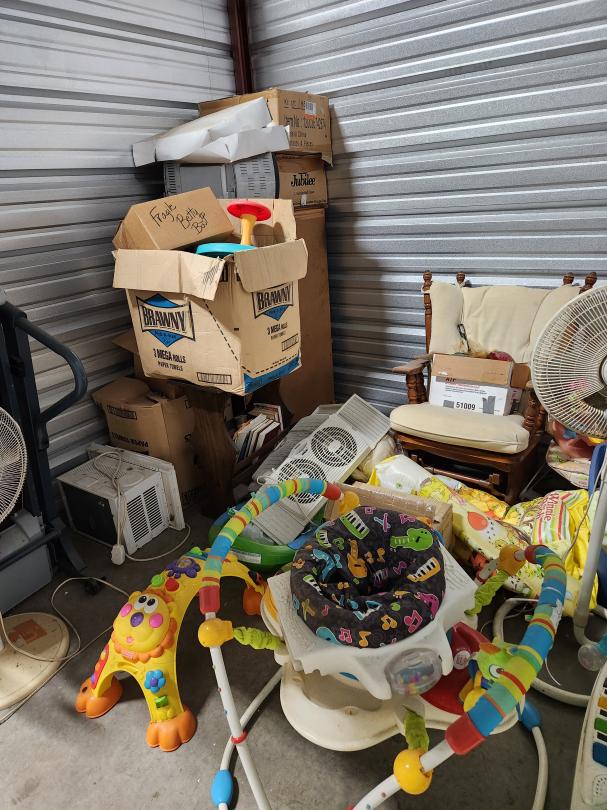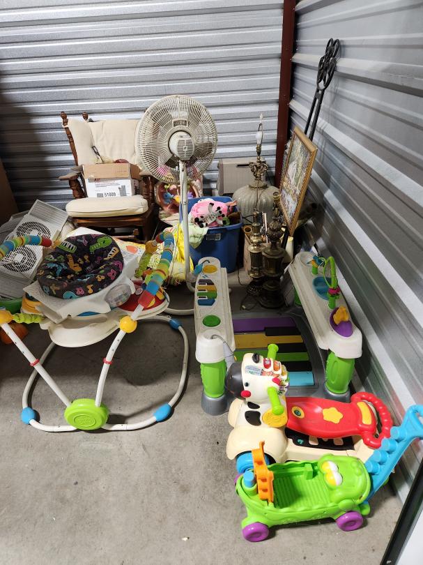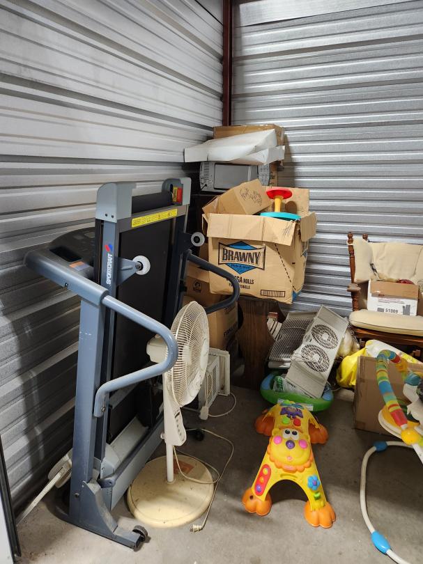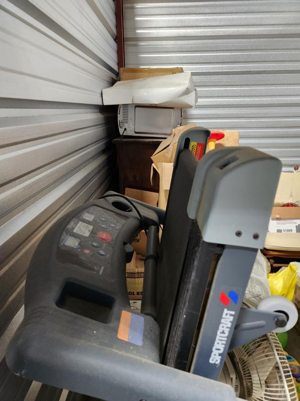 This unit appears to contain…TREADMILL, MICROWAVE,TOYS, AIR CONDITIONER, ROCKING CHAIR, LAMPS