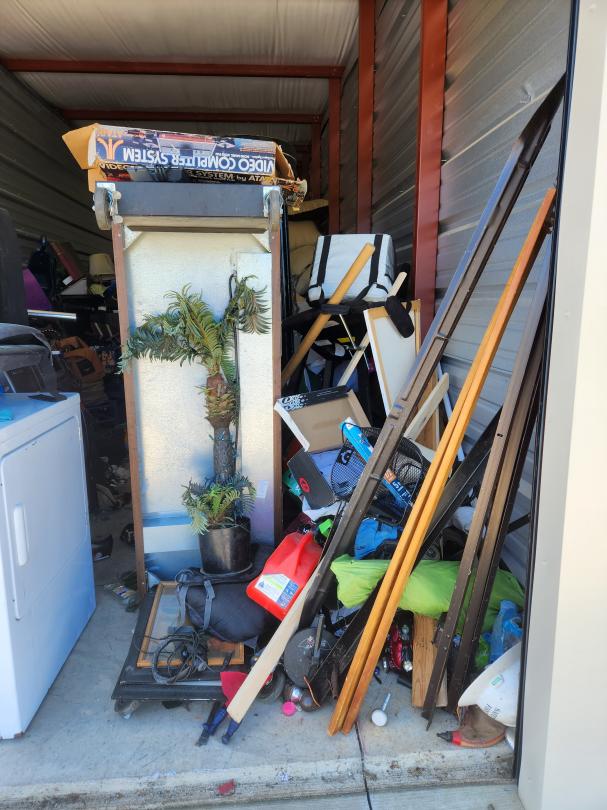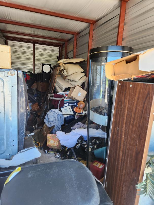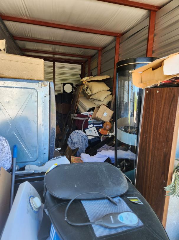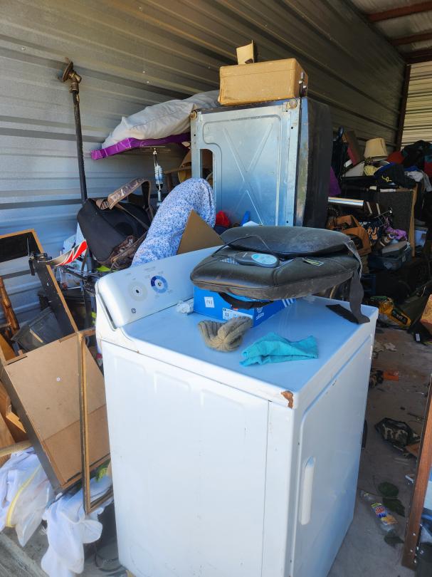 This unit appears to contain…WASHER, DRYER, CURIO, SOFA, BOXES, BAGS