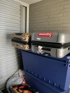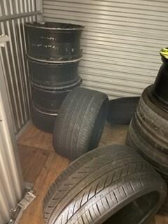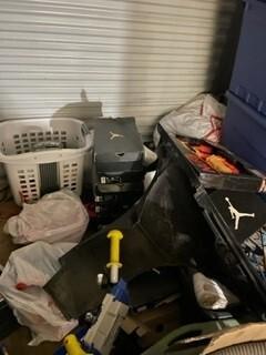 This unit appears to contain…10X10X8: car parts, tires, wheels, totes, shoes, Earlex vacuum, clothes, BROTHER sewing machine, paint,, toys, tools, boxes, bags, totes, toddler bike