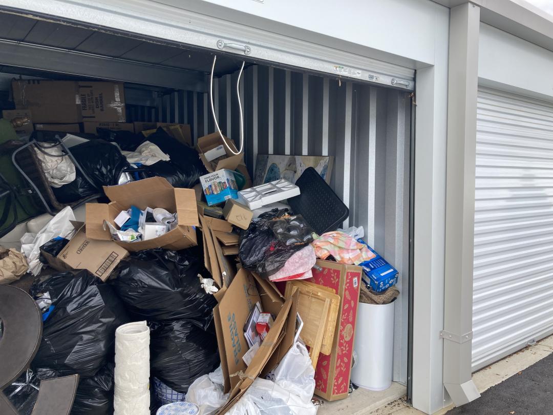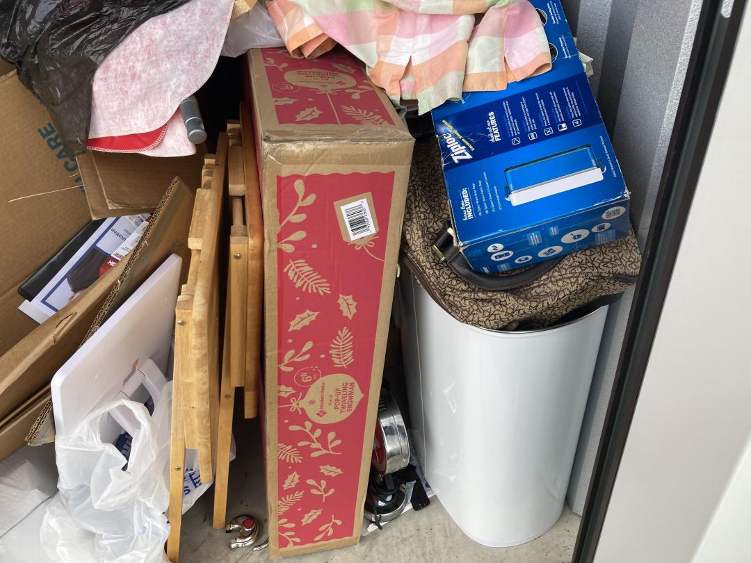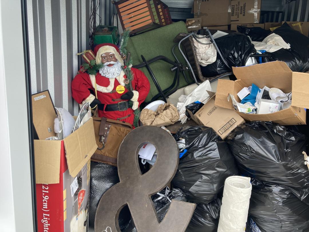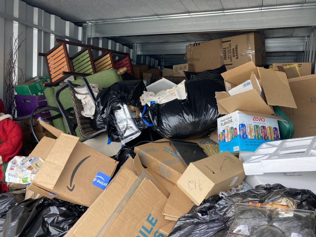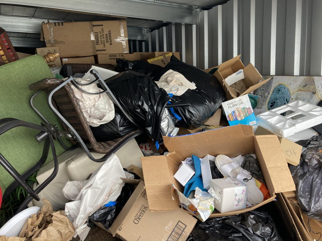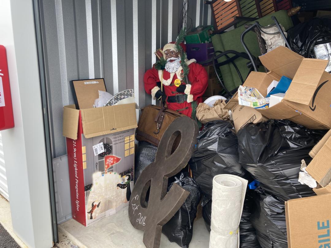 This unit appears to contain…Appears to contain: Holiday Decor, Loveseat, Swivel Chair, Artwork, Home Decor, Misc Household items, tubs, boxes, bags, totes, clothing