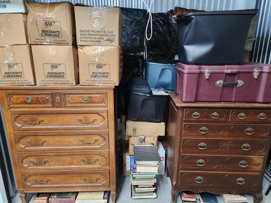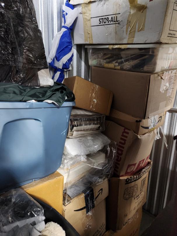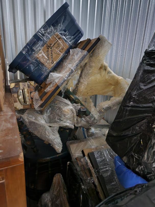 This unit appears to contain…BINS/BOXES/BOOKS/ARTWORK/BACKPACK/CHAIRS/DRESSERS/PAINTING