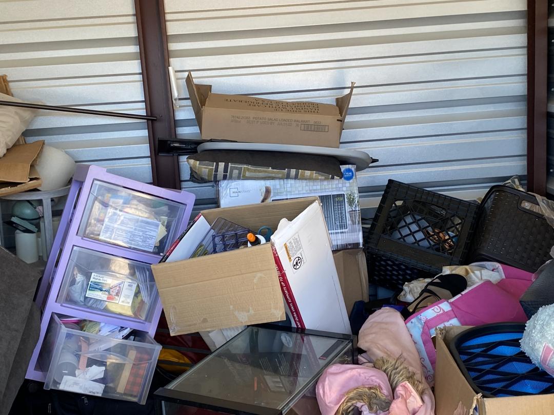 This unit appears to contain…Unit Appears to Contents: Couches,Shelving,Plastic Bags,Plastic Containers,Misc. Boxes,Clothing,Misc. Items,Suitcases,Laundry Baskets,Toys