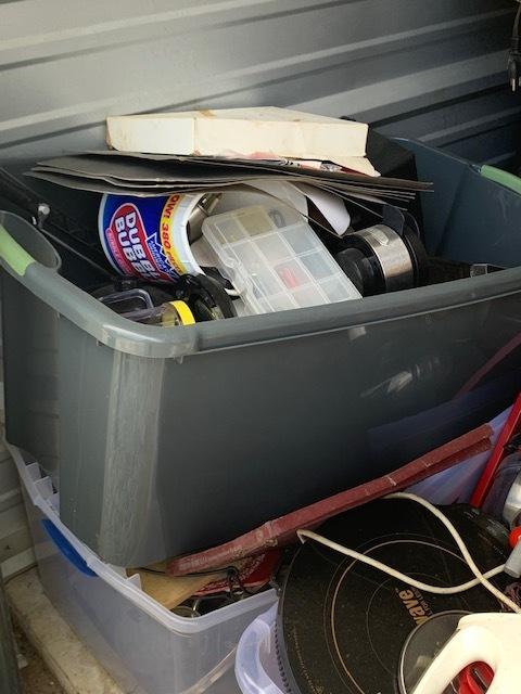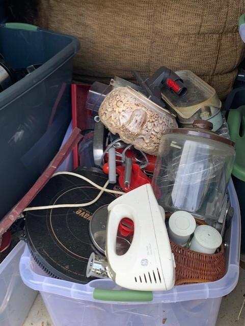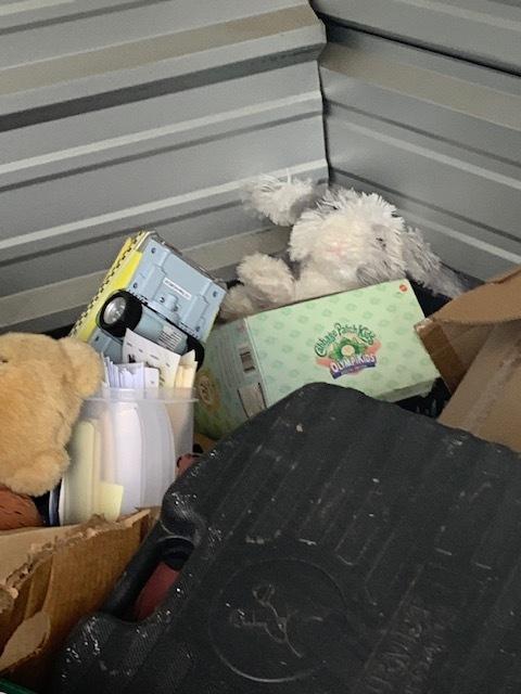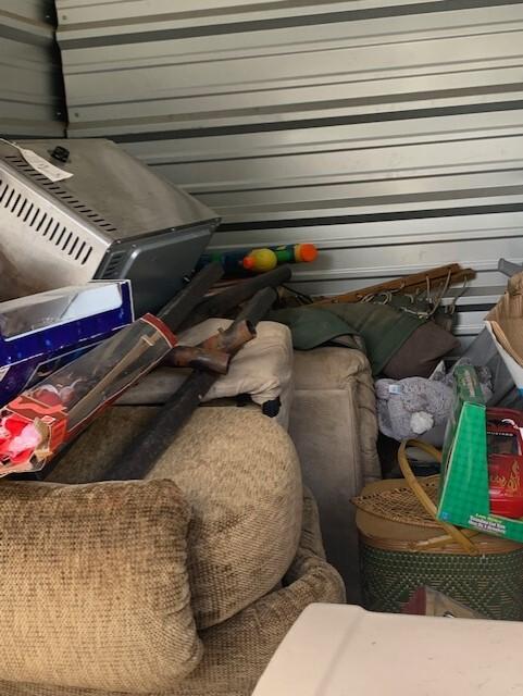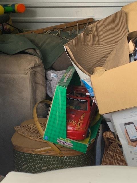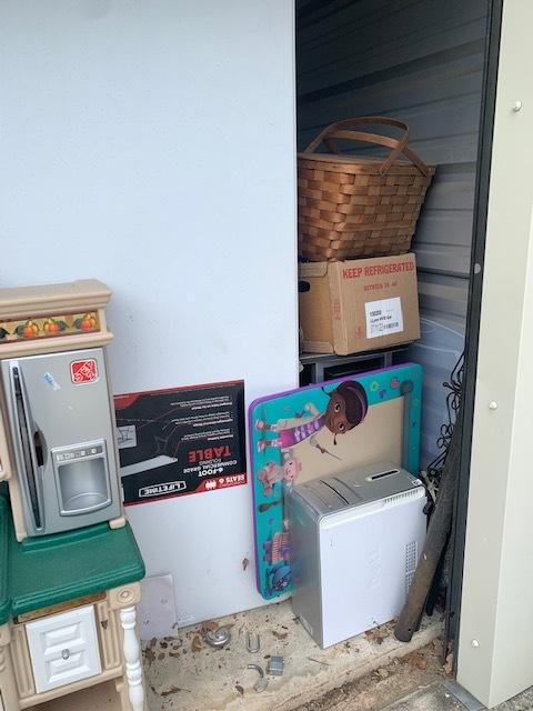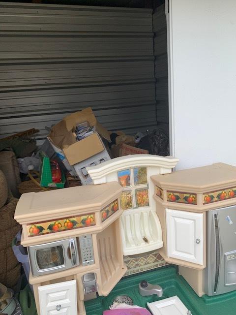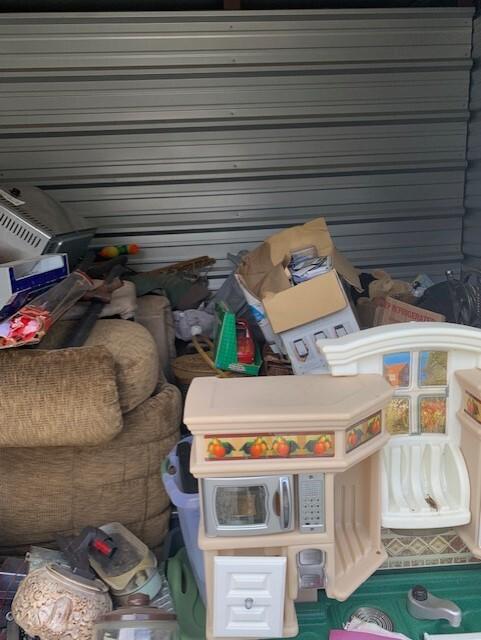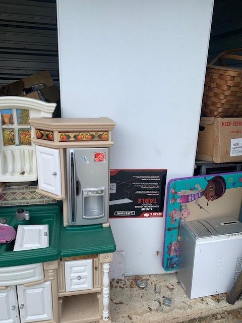 This unit appears to contain…Computer Equip.,Chairs,Tables,Kitchenware,Decor,Plastic Containers,Misc. Boxes,Misc. Items,Sports Gear,Toys