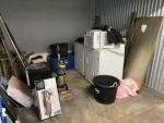 This unit appears to contain…washer, dryer, carpet cleaner, microwave, AC unit, tote, boxes, paintings, vacuum