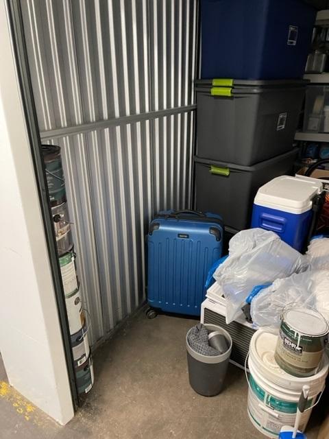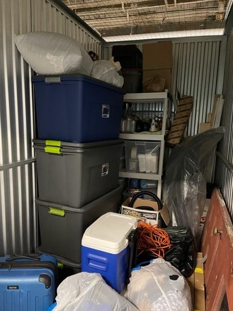 This unit appears to contain…Totes, door, boxes, shelf, suitcase