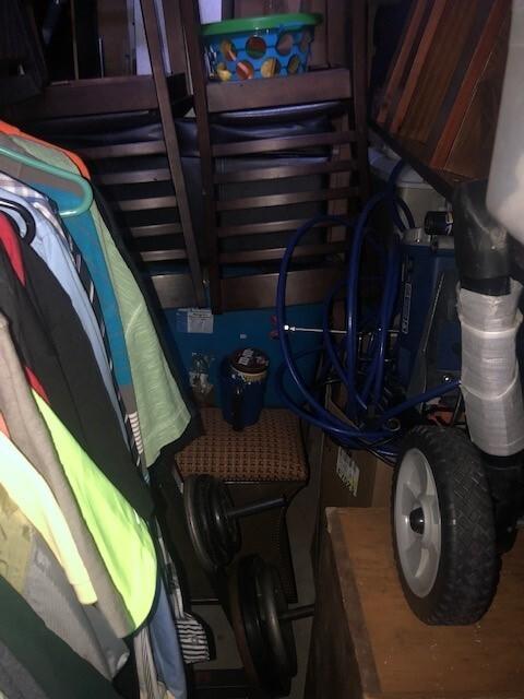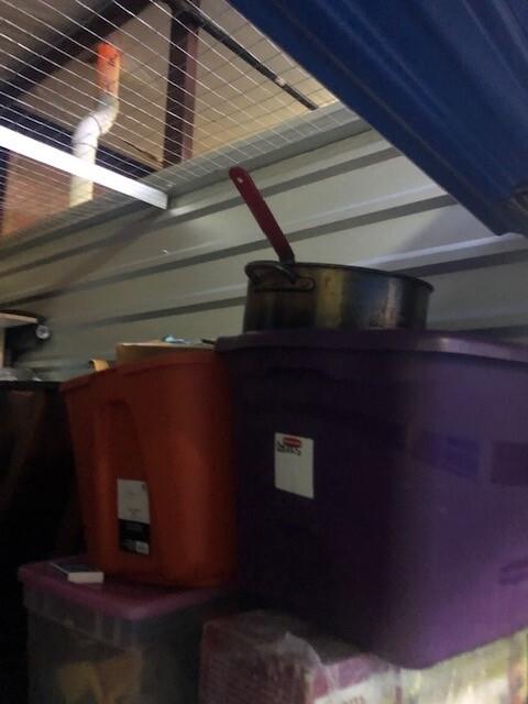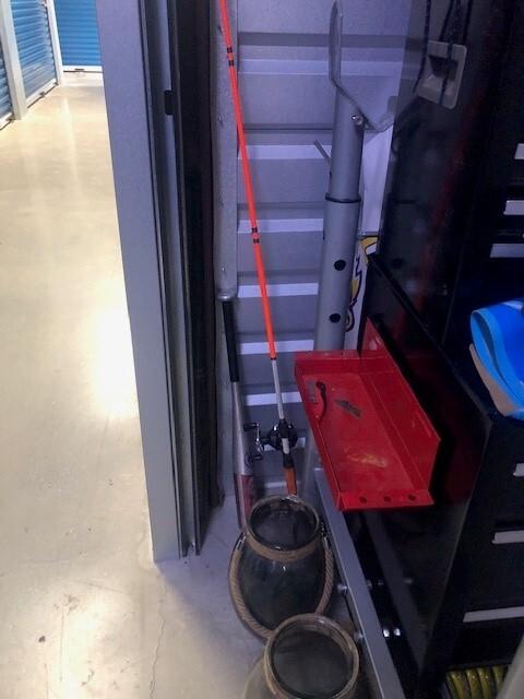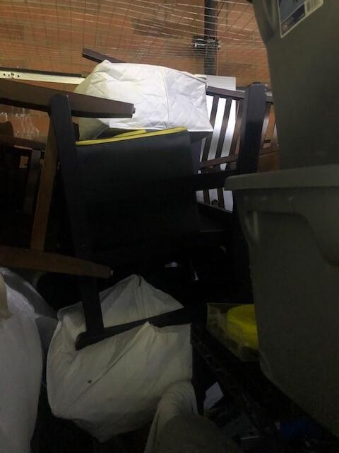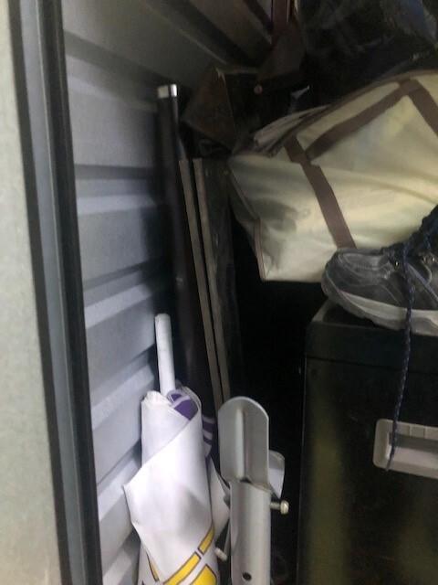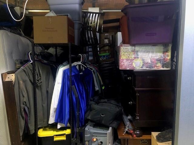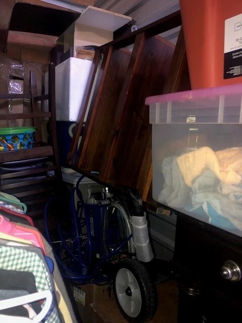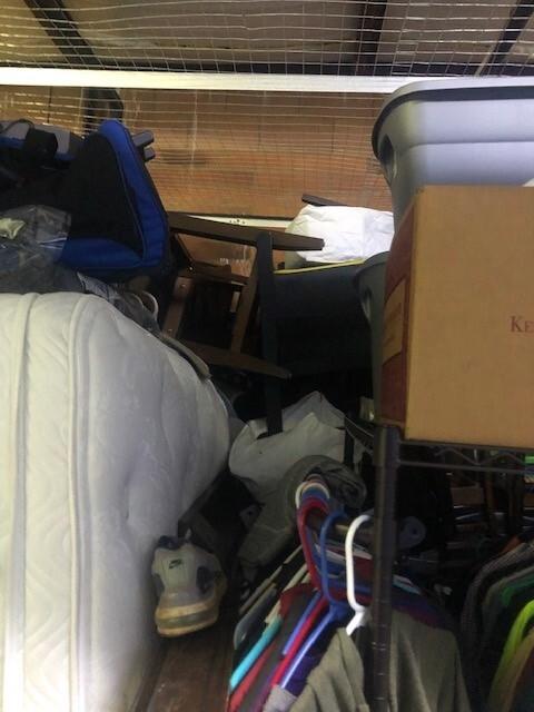 This unit appears to contain…Appears to Contain: Toolbox, Misc. Tools, Misc. Power tools, Shelving, King Mattress, Bed frame, Dresser, Charis, Table, TV Stand, Plastic Bags, Plastic Containers, Misc. Boxes, Clothing, Sports Gear, Suitcase, Clothing Rack, Pet Items, Misc. Items, Fishing Pole, Baseball Bat, Air Compressor, Weights