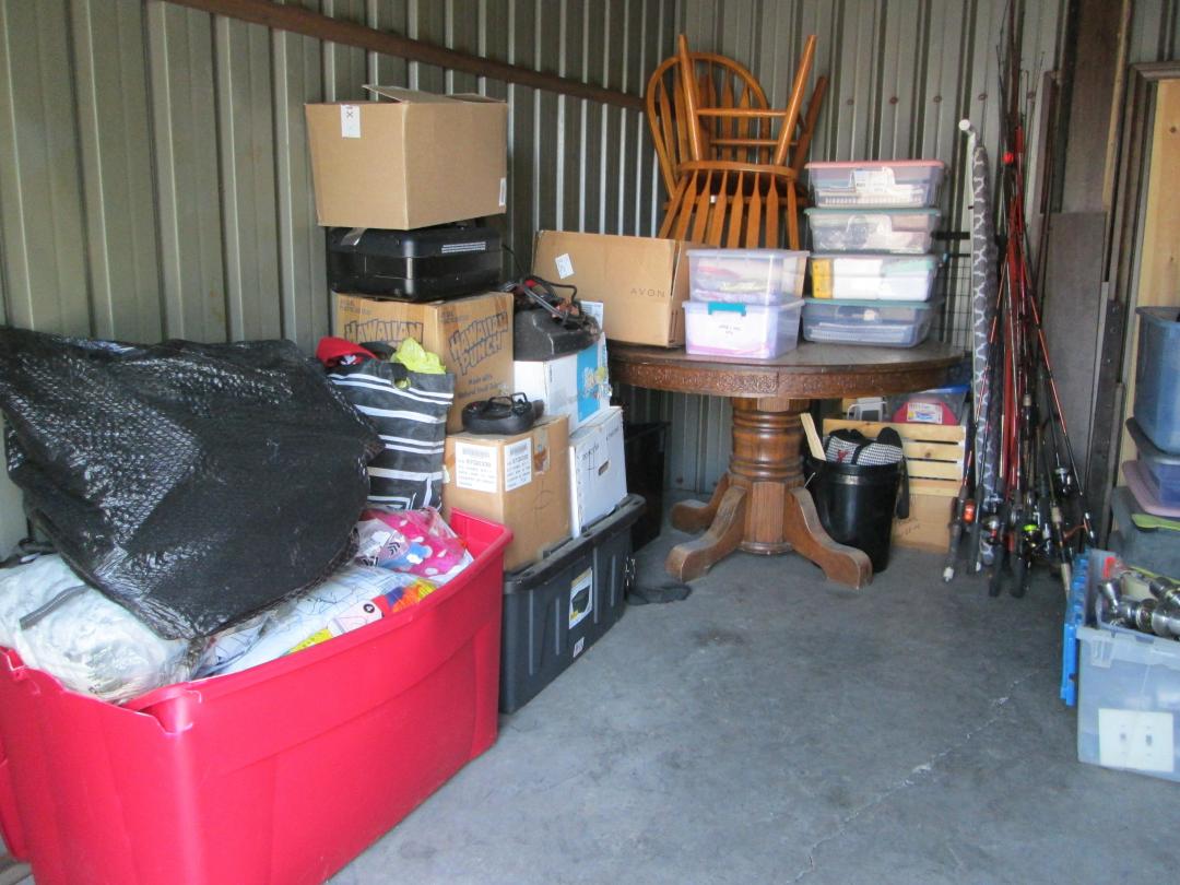This unit appears to contain…TABLE, TOTES, FISHING POLES