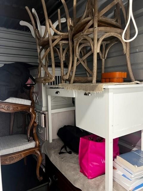 This unit appears to contain…Office Desks, Chairs, Tables, Misc. Items, Exercising Equip., Suitcases, Chests