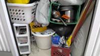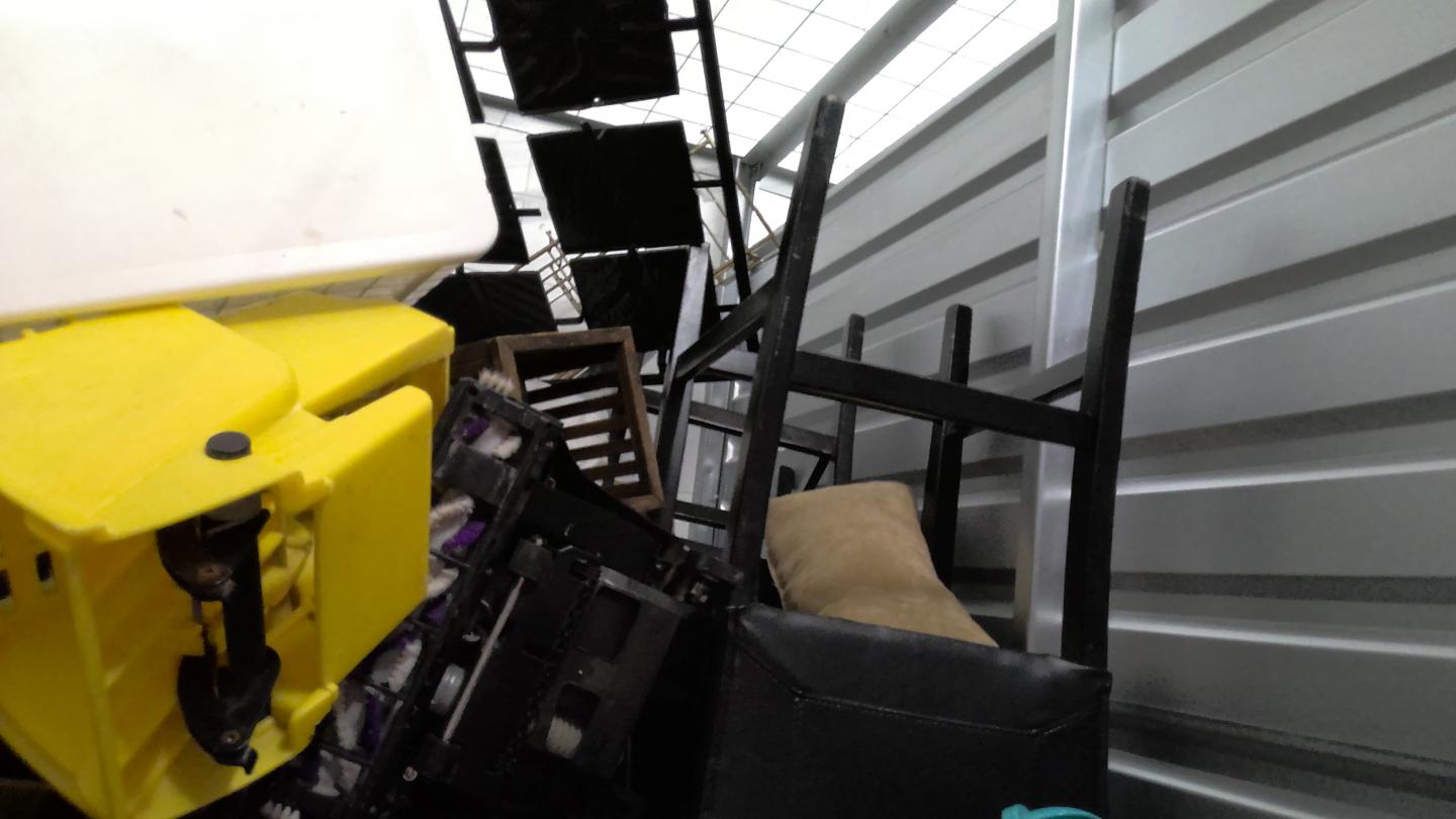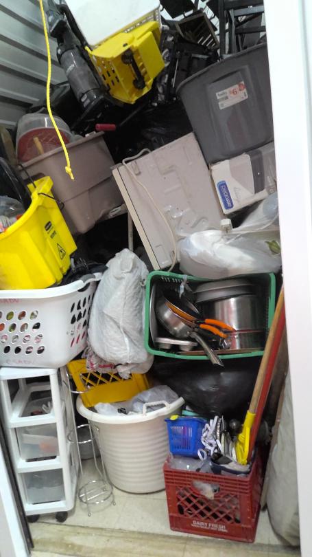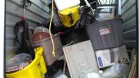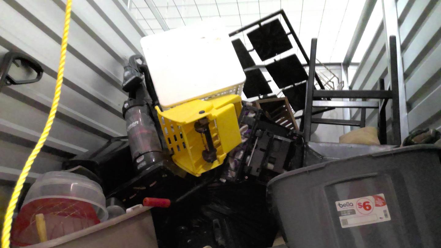 This unit appears to contain…Carpet cleaner, furniture, kitchen items and tubs