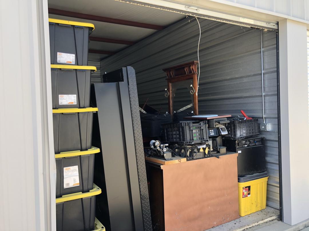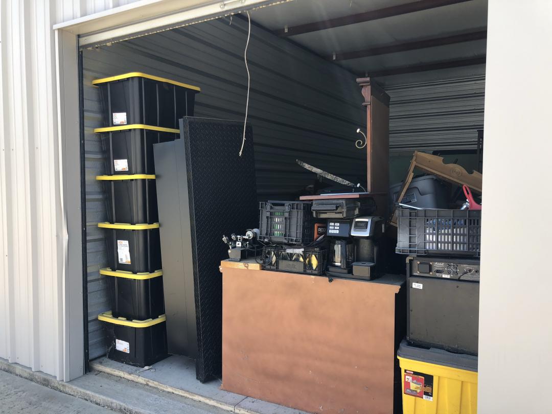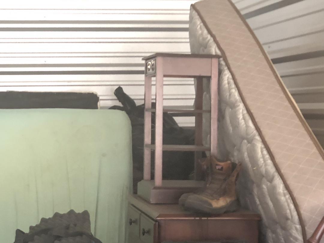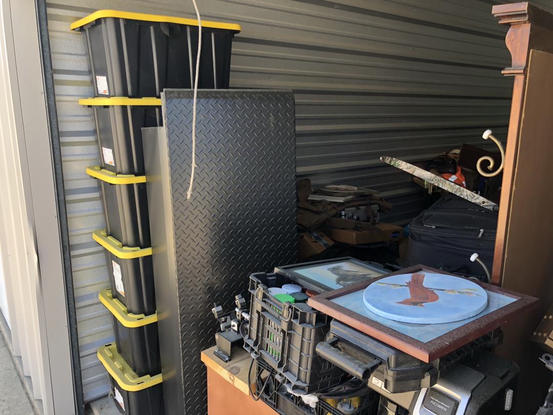 This unit appears to contain…totes, tool boxes, compressor, dressers, pictures, guitar amp, side tables, mattresses, coffee maker, luggage, shoes.