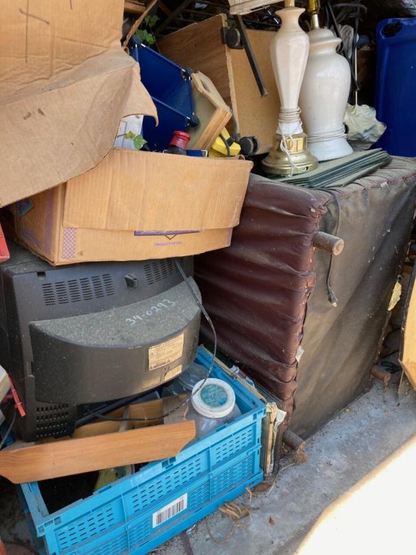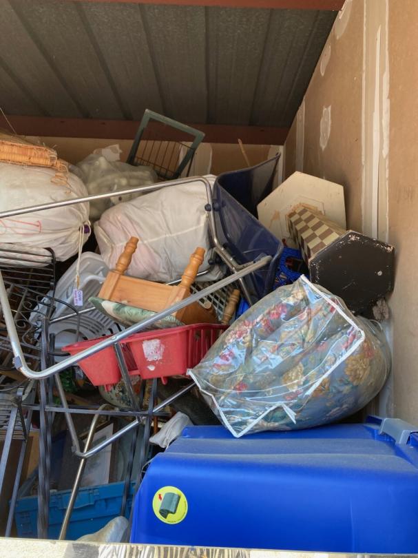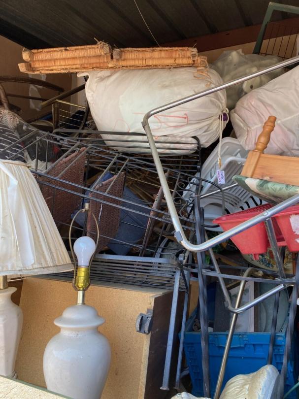 This unit appears to contain…TV, lamps, chairs, decor, plastic bags, misc. boxes, misc. items