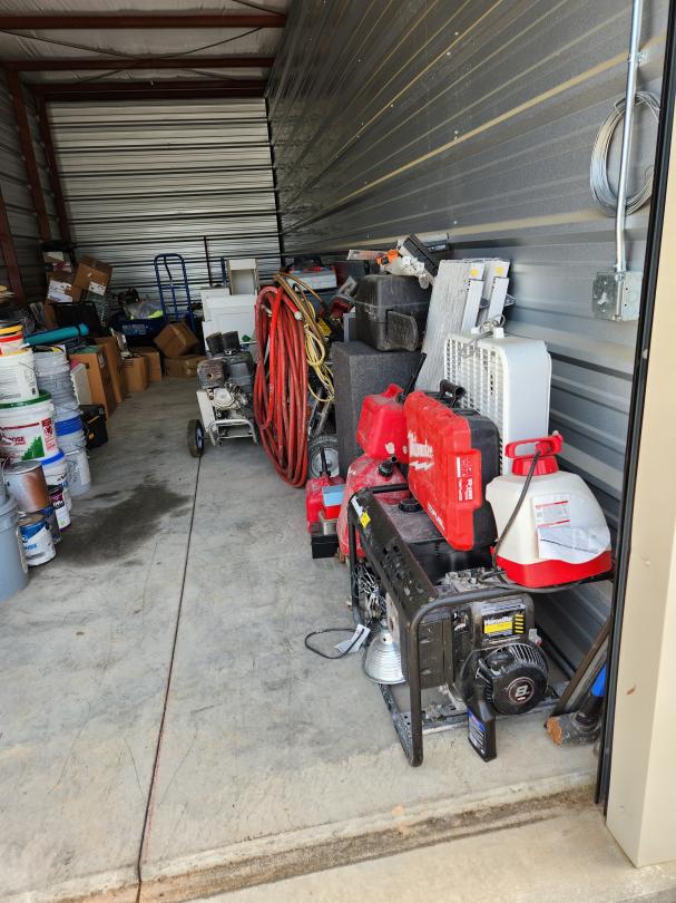 This unit appears to contain…PAINT, TOOLS, GENERATOR, POWER SAW.
