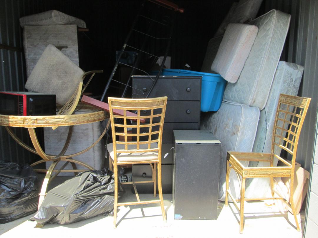 This unit appears to contain…Furniture, Mattress, Box spring, Totes