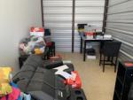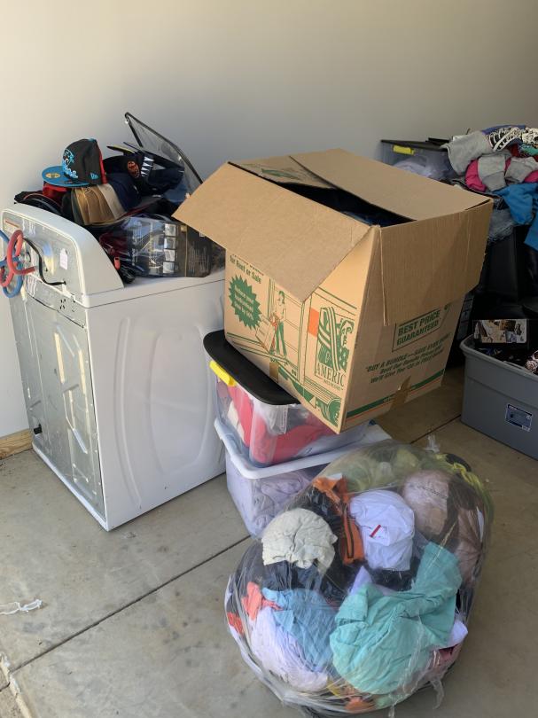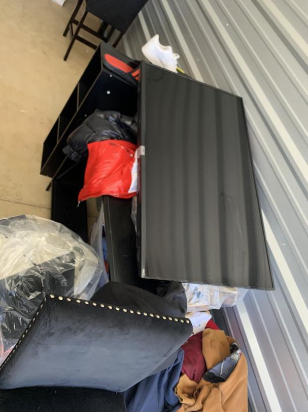 This unit appears to contain…Washing Machine, Dryer, Box Springs, Bed Frame, Shoes, Hats, Clothes, Sofa, Flat Screen TV, Boxes