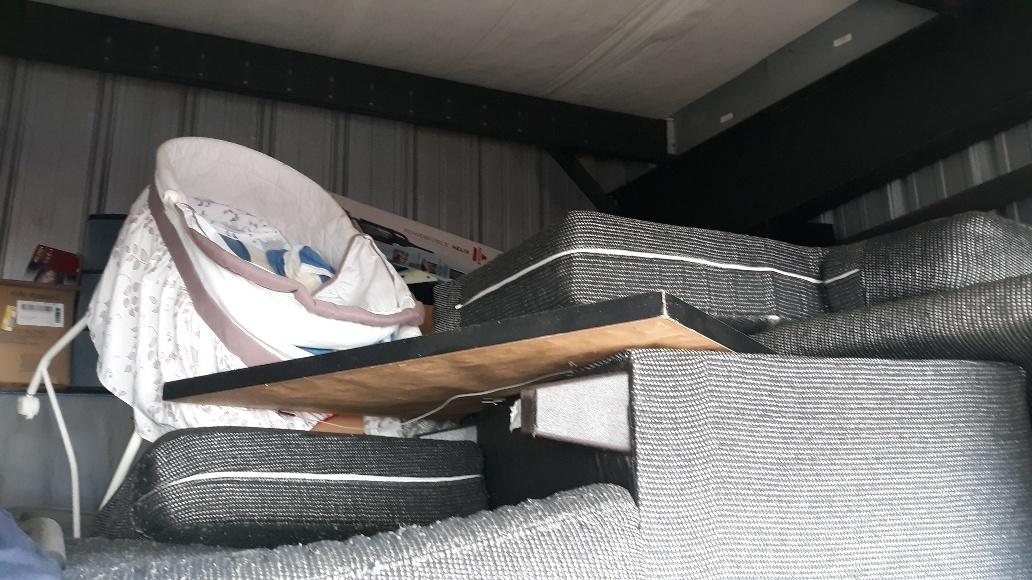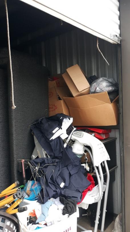 This unit appears to contain…auto parts, tools, couches, mattress, box spring, dresser, nightstand, decor, bags, boxes, totes, clothes, misc. items, exercise equipment, laundry baskets, baby furniture,