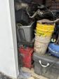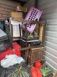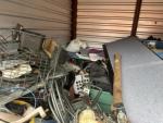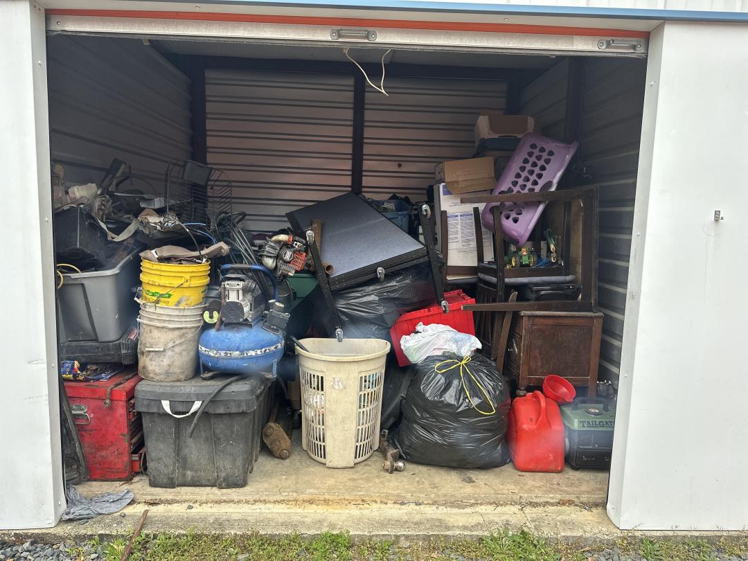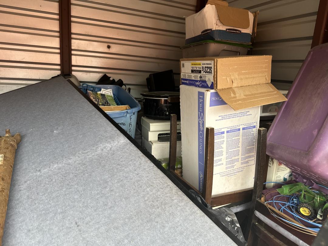 This unit appears to contain…Boxes, Totes, All kinds of tools, Air Compressor, Echo Weedeater or Trimmer, Trailer Hitch, Buckets, Craftsman Hand Tools in Case, Tool Chest, Gas Can, TailGator, Dining Table and Chairs, Buckets, Loppers, Bed Frame, Sideboard, Drive Shaft, Crockpot, Printer