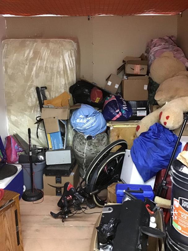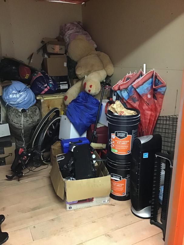 This unit appears to contain…8x8x6 Split Level 1st Floor Upper Level Stair Climate, unit appears to have a mattress, bed frame, cooler, beach chair, folding bike, beach umbrella, and other miscellaneous items