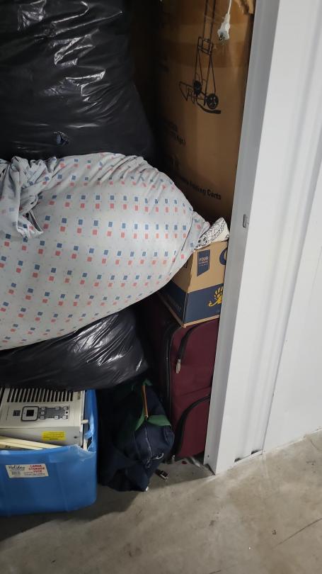 This unit appears to contain…Bags, Boxes, Air Conditioner, Totes, Suit Cases, Shoes, Clothes, Electronics