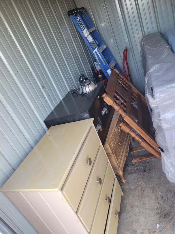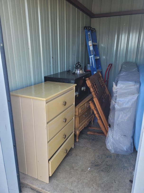 This unit appears to contain…mattress, box spring, bed frame, dresser, nightstand, plastic container