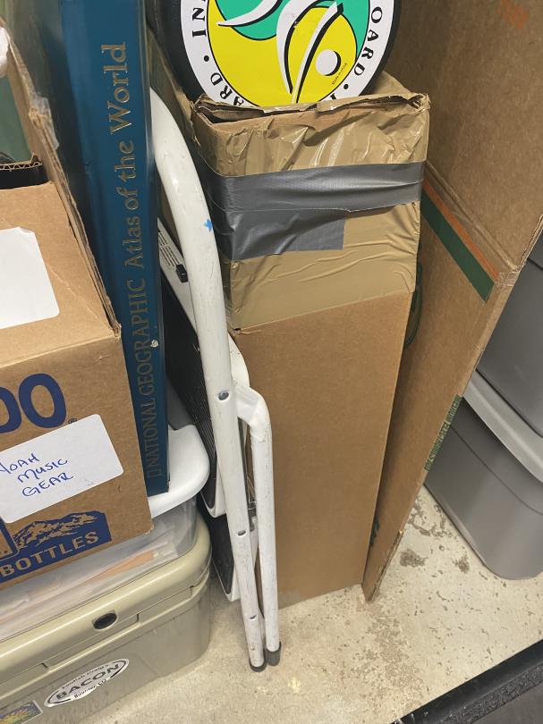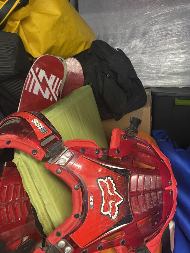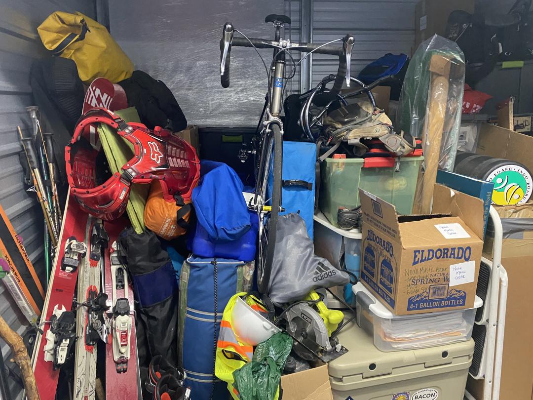 This unit appears to contain…Skis and Boots, Bikes, Totes, Coolers, Camping Gear. Boxes, Duffel Bags, Stool, Hard Hat, Step Stool, Fishing Poles Step Ladder and Violin