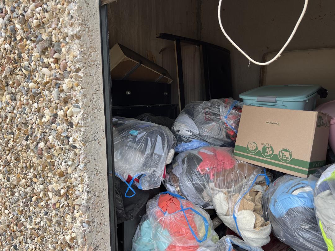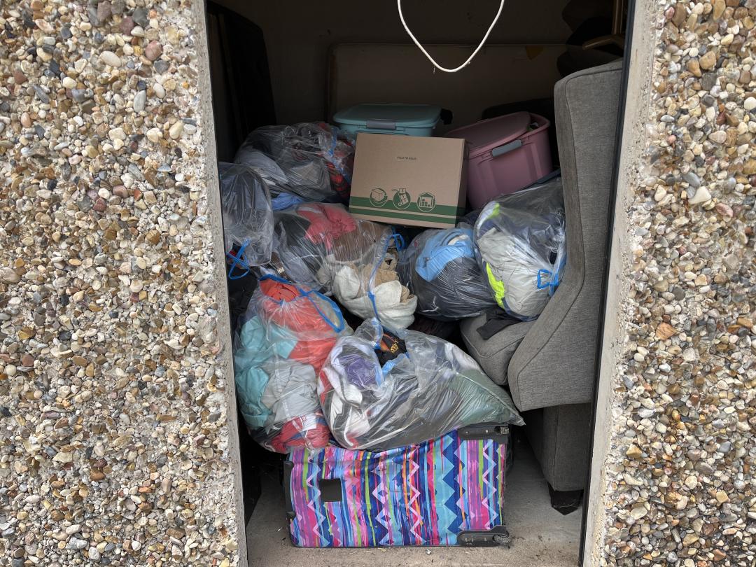 This unit appears to contain…Couch, Bags, Boxes, Headboard, Chest, Pictures