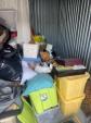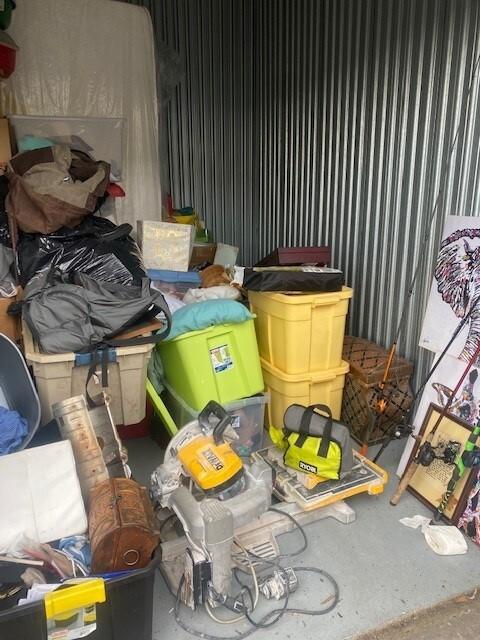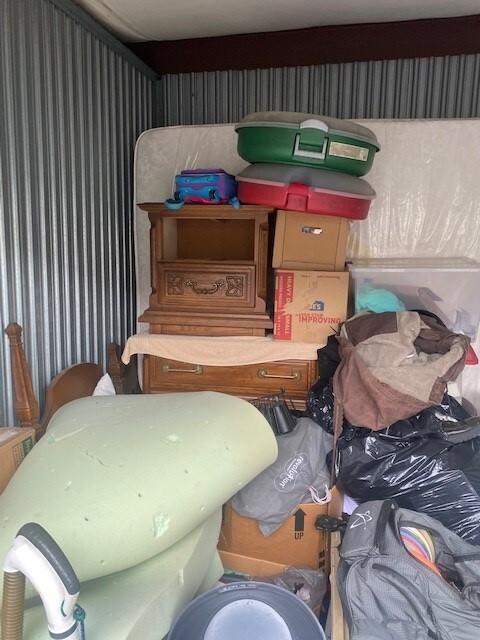 This unit appears to contain…Fishing poles, tools pictures, plastic totes, vacuum, mattress, dresser