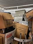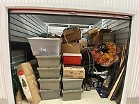 This unit appears to contain…Unit appears to contain totes, boxes, vacuum, shelves, folding chairs, fan