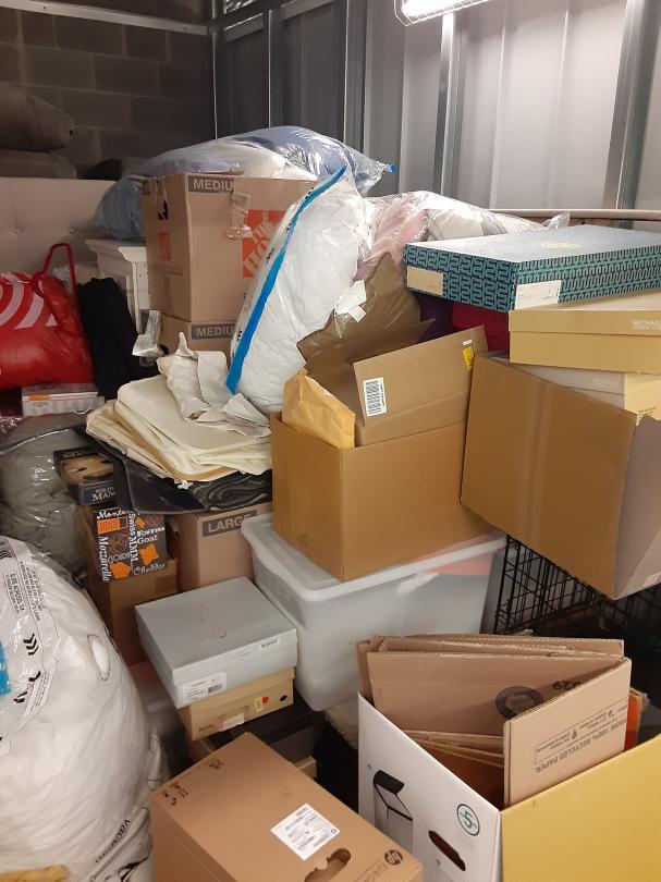 This unit appears to contain…Household goods, furniture, boxes, shoes