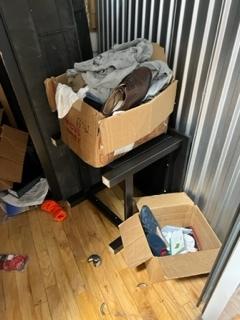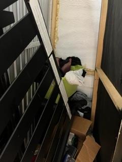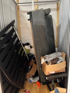 This unit appears to contain…Appears to contain: Couch, Bed Frame, Nightstands, Tables, Plastic Containers, Miscellaneous Boxes, Clothing